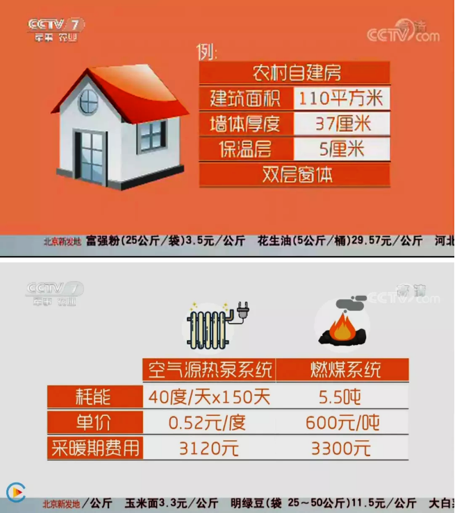 報(bào)道指出,以農(nóng)村自建房為例,建筑面積110平方,墻體厚度37厘米,保溫層5厘米,雙層窗體,按照150天的采暖期,空氣源熱泵系統(tǒng)耗電量為40度/每天,每度為0.52元,采暖期費(fèi)用為3120元。而燃煤需要5.5噸,以每噸600計(jì)算,則需要3300元。