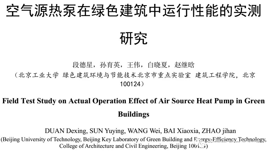 空氣源熱泵在綠色建筑中運行性能的實測研究