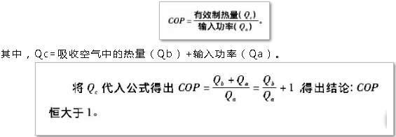 空氣作為可再生能源是取之不盡、用之不竭的天然資源。而熱泵技術(shù)是利用輸入少量的電能,從空氣中獲得高于輸入電能2倍~5倍的熱能來(lái)加熱被加熱對(duì)象,實(shí)現(xiàn)供熱的目的。空氣源熱泵工作中吸取空氣中的熱量是免費(fèi)的,而輸出的熱能是以它為主的,根據(jù)熱泵制熱性能系數(shù)公式: