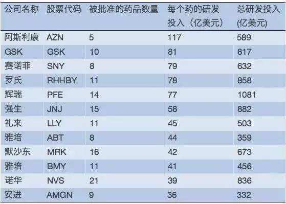 福布斯公布的全球主要跨國藥企近年研發支出