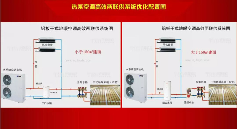 1)空氣源水系統+高效水地暖末端系統(臥室快裝電地暖),空調地暖兩聯供方案最優!