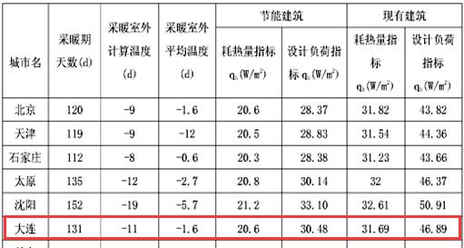 以大連市的一處1000平米節(jié)能建筑為例,根據(jù)上圖《全國主要城市采暖期耗熱量指標和采暖設計熱負荷指標》,大連市節(jié)能建筑每平方米采暖季供暖所需熱能為20.6w/㎡*24h*131d/1000=64.77kwh/㎡