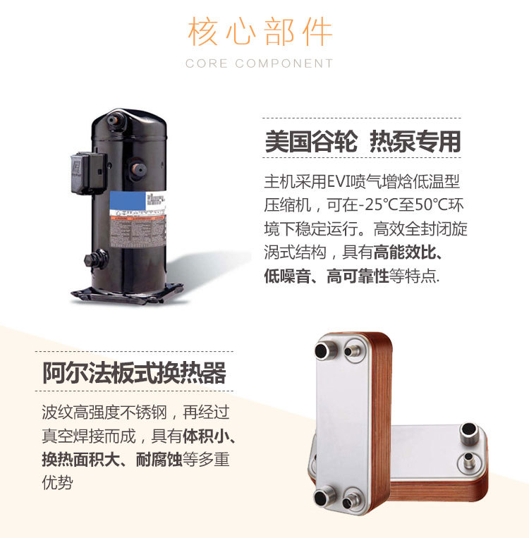 超低溫空氣源熱泵是利用太陽能光熱深度利用的新一代熱水設備。近十年來,由于空氣源熱泵技術高效、節(jié)能安全、環(huán)保的特性,成為全球關注的技術。超低溫空氣源熱泵技術就是通過消耗少量的電能驅(qū)動,把熱量從低溫區(qū)域轉(zhuǎn)移到高溫區(qū)域的一種設備。夏天,熱泵將室內(nèi)熱量轉(zhuǎn)移到室外,實現(xiàn)制冷功能;冬季,熱泵吸收室外大自然的熱量,送到室內(nèi)實現(xiàn)制熱采暖。簡而言之,就是通過效果少量的電力來實現(xiàn)熱量的搬運,從而達到制冷、制熱的目的。可根據(jù)客戶需求配置專用暖氣片、風機盤管、地暖管等終端,提高產(chǎn)品的使用體驗。